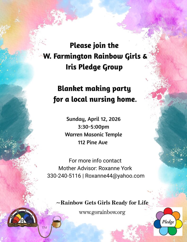 WEST FARMINGTON RAINBOW FLYER: BLANKET MAKING PARTY ON APRIL 12, 2026